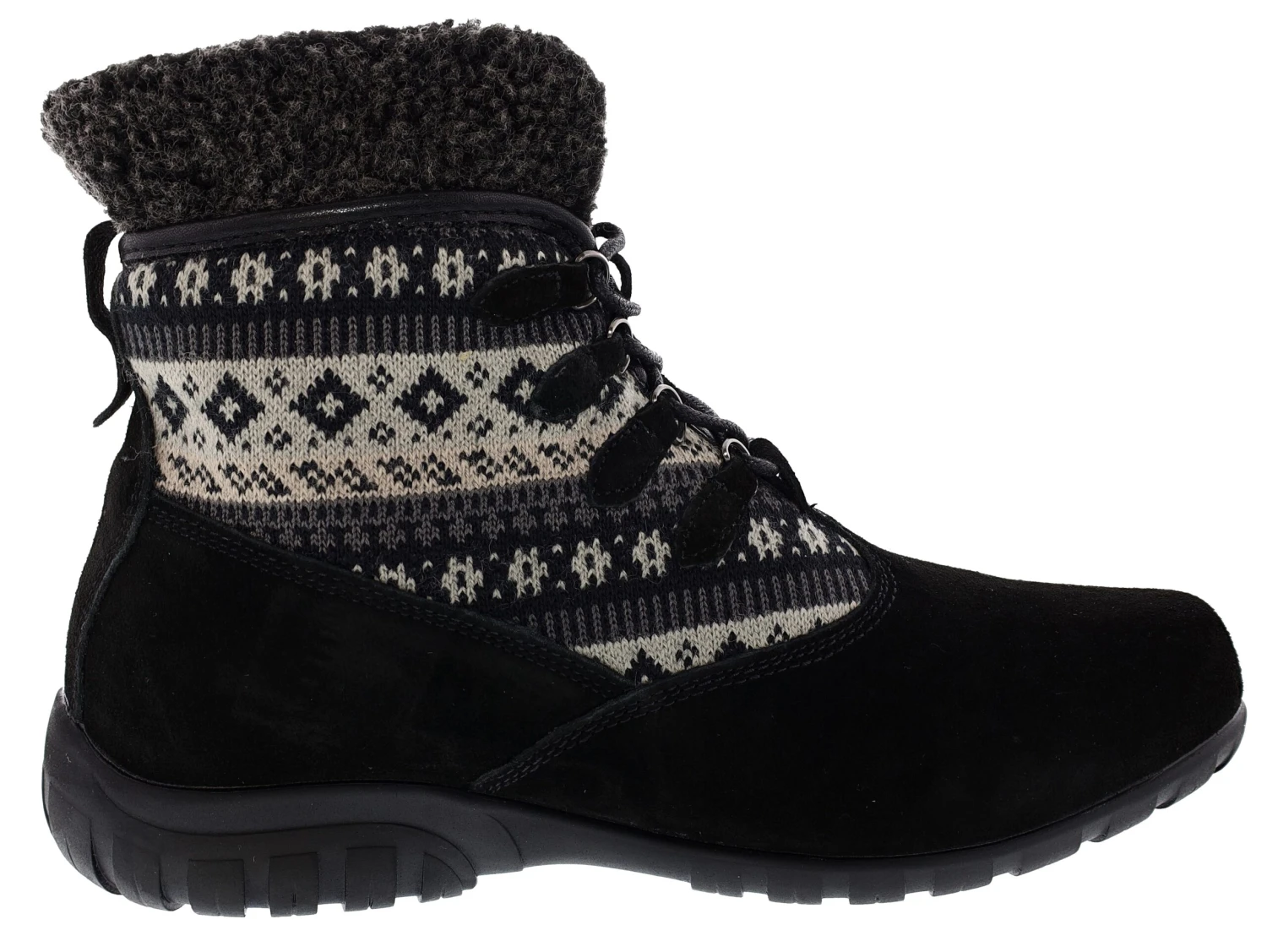The extra roomy toe box of the popular Delaney gets a fun sweater knit shaft in the Alpine for a warm and comfortable fall bootie style.