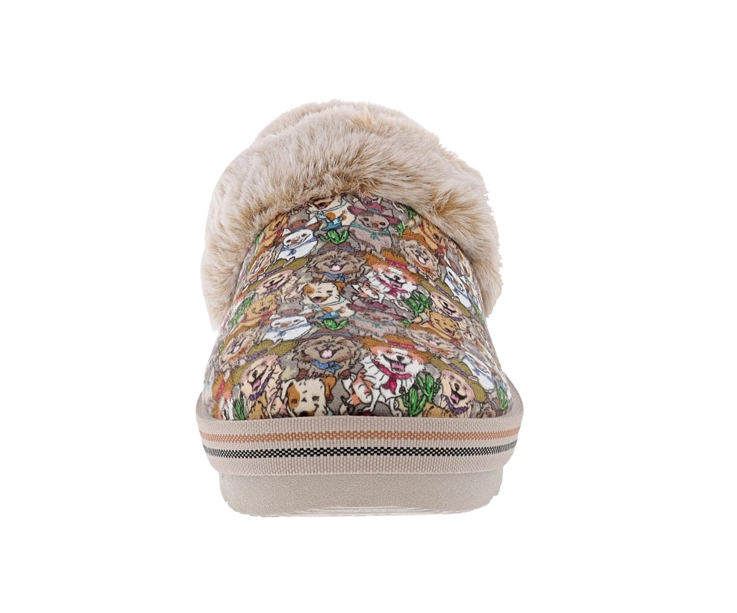 Snuggle up with puppy-soft comfort and style wearing Skechers Hands Free Slip-ins: BOBS from Skechers Cozy Kiss – Doggy Derby. Designed with our Heel Pillow, this indoor/outdoor comfort slipper features a woven fabric upper in an allover dog print, faux-fur trim and lining, plus a cushioned Skechers Memory Foam footbed.